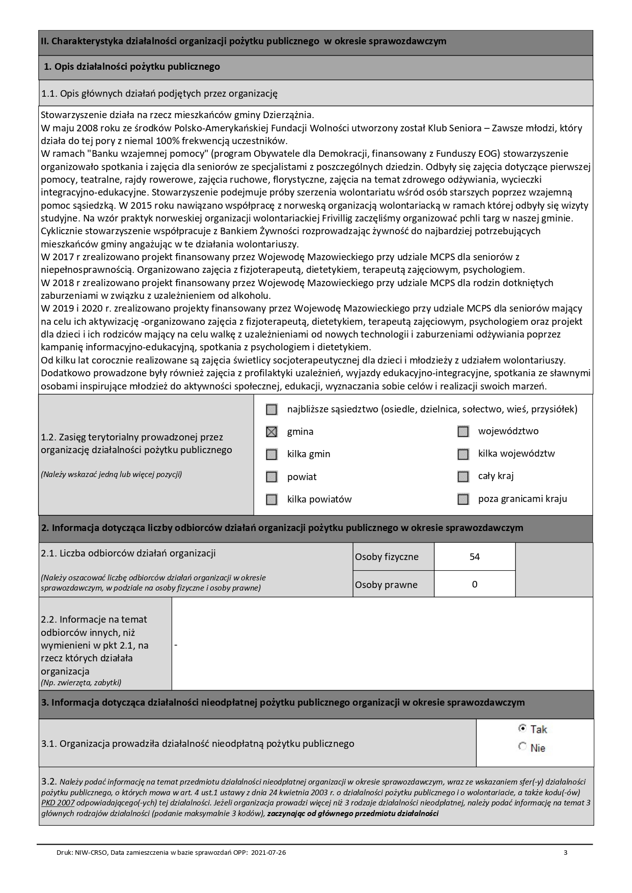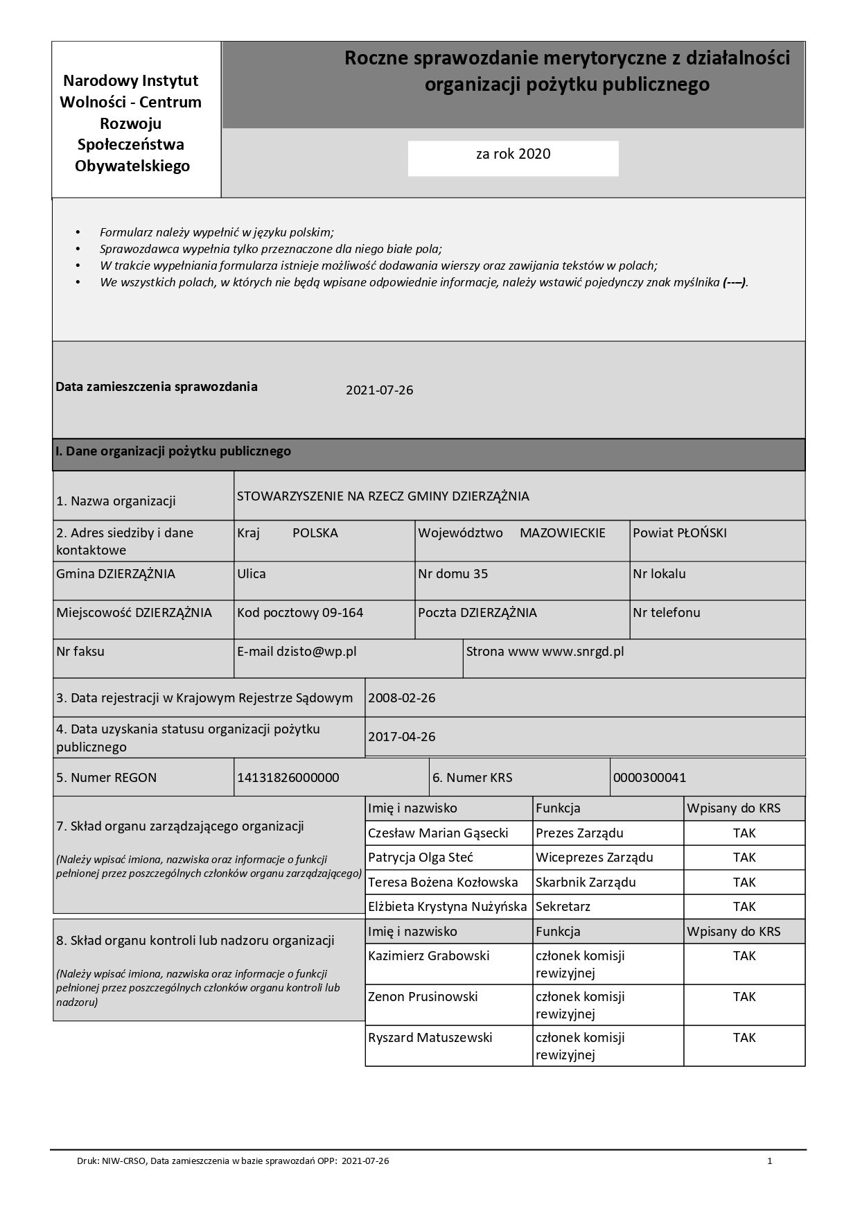 Zgodnie z obowiązkiem sprawozdawczym przedstawiamy do wiadomości publicznej sprawozdanie merytoryczne i finansowe zatwierdzone uchwałą podczas zebrania walnego. Sprawozdanie zostało zamieszczone w bazie sprawozdań NIW https://sprawozdaniaopp.niw.gov.pl/
